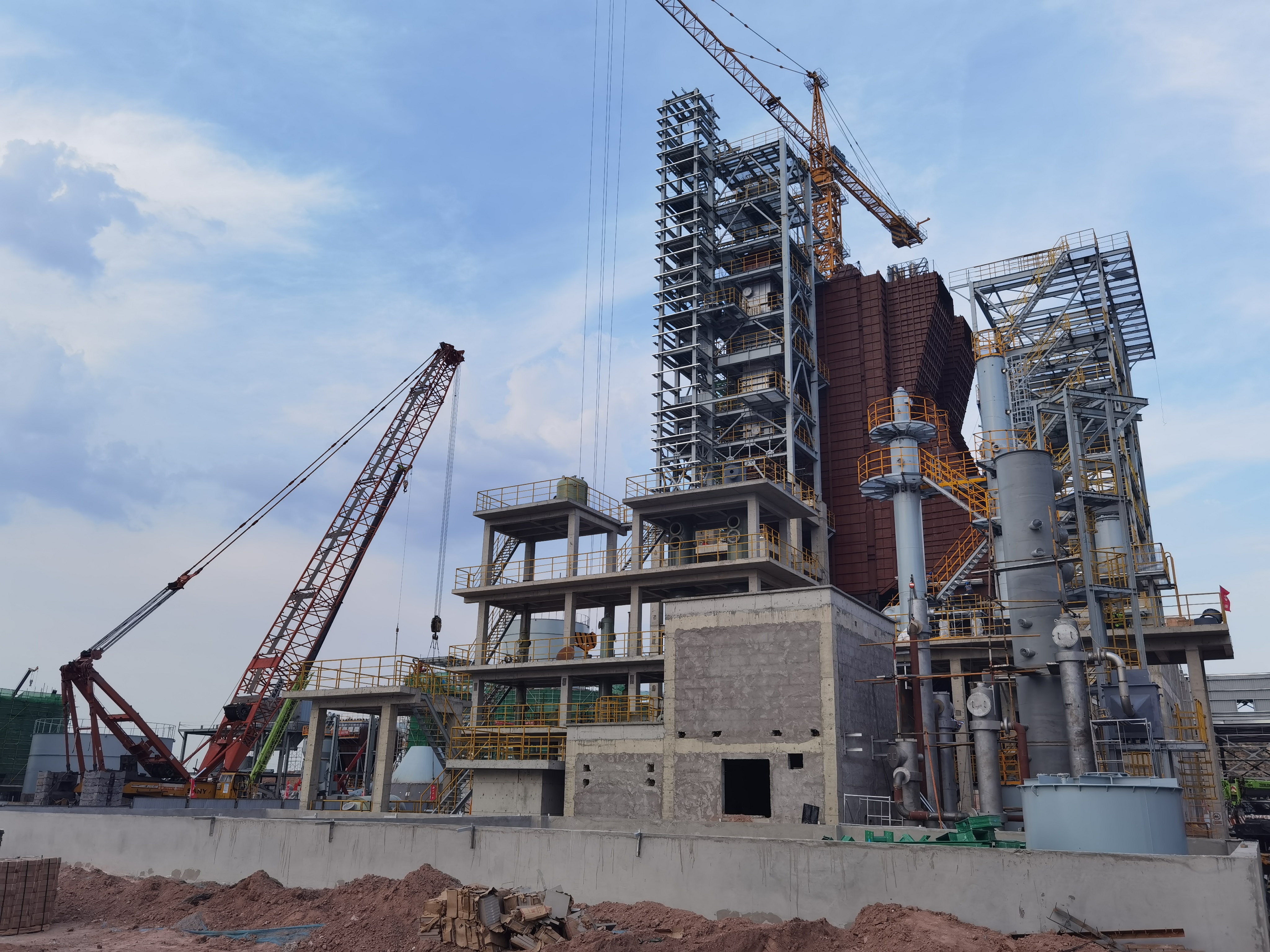 在內(nèi)蒙古匯能硅鋁新材料科技有限公司20萬(wàn)噸年煤矸石粉煤灰固廢資源化綜合利用示范項(xiàng)目施工現(xiàn)場(chǎng),工程于2月26日實(shí)現(xiàn)鋼結(jié)構(gòu)柱首吊成功后,項(xiàng)目部乘勝追擊,突破鋼結(jié)構(gòu)安裝體量大、安裝工藝技術(shù)復(fù)雜、吊裝任務(wù)繁重等難啃的硬骨頭,堅(jiān)持策劃和方案同步先行,精心策劃,科學(xué)組織,及時(shí)繪制更新進(jìn)度圖動(dòng)態(tài)管理施工節(jié)點(diǎn)。采取白班夜班輪流盯等作業(yè)方法,加快施工進(jìn)度,高質(zhì)量、高標(biāo)準(zhǔn)完成長(zhǎng)達(dá)146.6米主廠房等單體工程鋼結(jié)構(gòu)安裝任務(wù)。