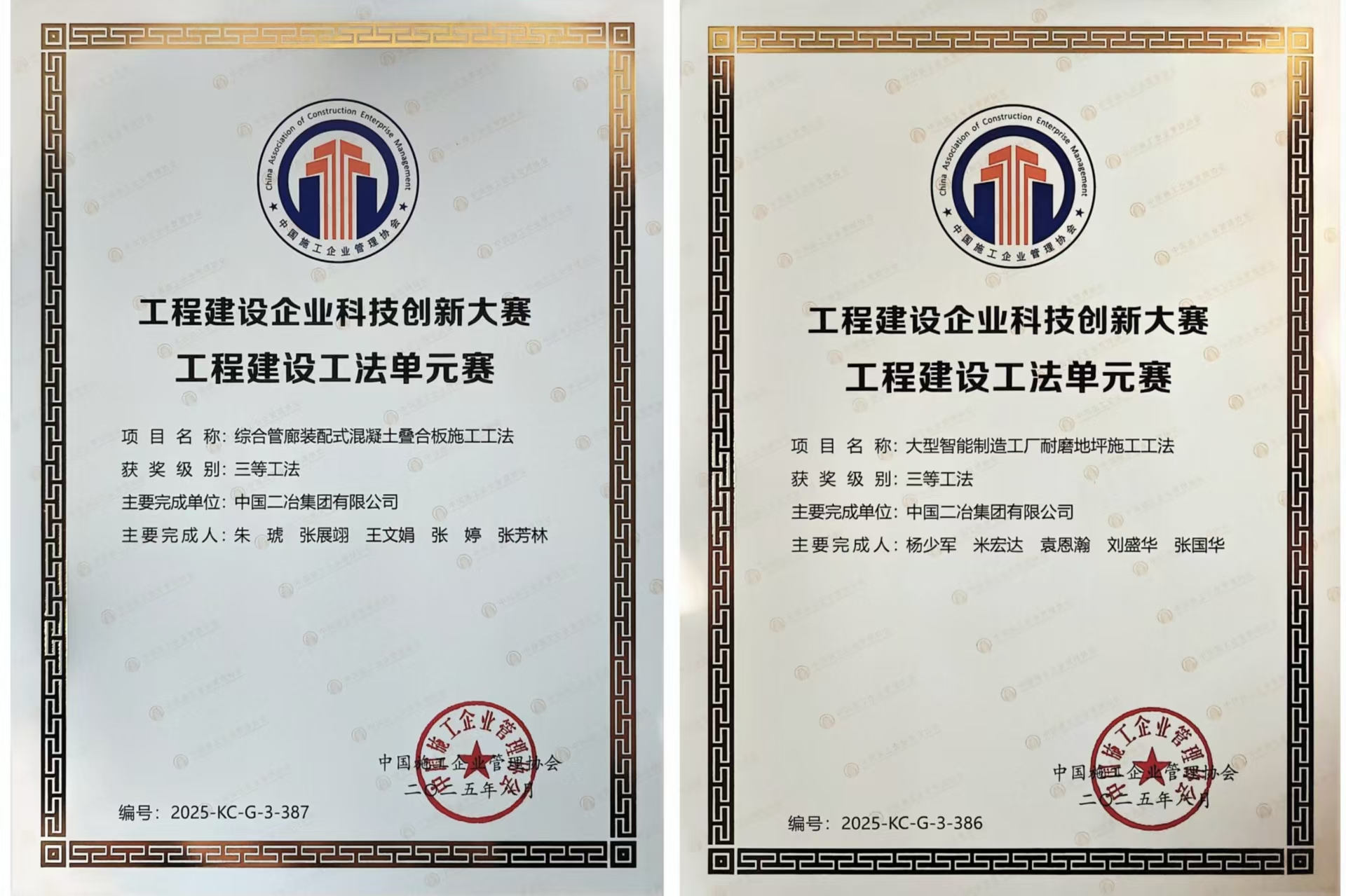 近日,湖南分公司申報的《大型智能制造工廠耐磨地坪施工工法》《綜合管廊裝配式混凝土疊合板施工工法》兩項核心技術(shù)成果,在工程建設(shè)企業(yè)科技創(chuàng)新大賽工程建設(shè)工法單元賽中,經(jīng)多輪嚴(yán)格考核,均榮獲三等獎,憑借過硬技術(shù)實力獲得行業(yè)專家高度認(rèn)可。?