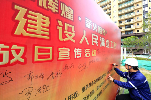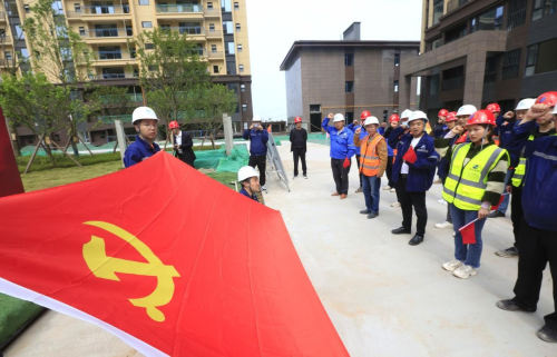 在辦實事、開新局環(huán)節(jié),項目全體黨員在黨旗下重溫入黨誓詞,表示要踐行長征精神,建設(shè)人民滿意工程,更加堅定作為一名共產(chǎn)黨員的理想信念;活動中,中國二冶黨群工作部向黨員突擊隊和青年突擊隊授旗,各方代表表達了“踐行初心使命,認真履職盡責”的決心;全體職工簽下請戰(zhàn)書,紛紛表示將繼續(xù)充分發(fā)揚“一天也不耽誤,一天也不懈怠”的中冶精神,以求真務實、開拓創(chuàng)新的精神,把全部力量凝聚到項目建設(shè)中來,向成都市人民交出一份滿意的答卷,隨后,各方代表圍繞安全環(huán)保、項目建設(shè)、工程質(zhì)量、工程進度等情況進行充分探討,對中國二冶董家埂社區(qū)工程的建設(shè)亮點進行深入了解。