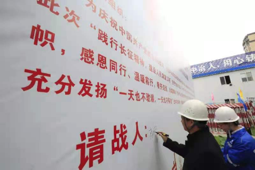 在學(xué)黨史、悟思想環(huán)節(jié),項(xiàng)目黨支部書記帶領(lǐng)大家參觀項(xiàng)目部黨建室,了解黨的光輝歷程;觀看中國(guó)二冶視頻宣傳片,共同回顧二冶的六十余載崢嶸歲月,見證冶金建設(shè)國(guó)家隊(duì)踐行“長(zhǎng)征精神”,邁進(jìn)新征程、奮進(jìn)新時(shí)代的風(fēng)采,激發(fā)全體員工投身建設(shè)人民滿意工程的熱情與決心。活動(dòng)中,項(xiàng)目全體黨員在黨旗下重溫入黨誓詞,表示要踐行長(zhǎng)征精神,建設(shè)人民滿意工程,更加堅(jiān)定作為一名共產(chǎn)黨員的理想信念;全體人員齊唱《我們走在大路上》,通過歌聲,南湖的航船,延安的寶塔,天安門的紅旗,深深地印在心里,井岡山的號(hào)角,西柏坡的誓言,南巡老人的講話,科學(xué)發(fā)展的強(qiáng)音,在耳邊回響,讓大家始終銘記革命烈士的堅(jiān)貞和不朽,以實(shí)際行動(dòng)來書寫“長(zhǎng)征精神”,走好新時(shí)代的長(zhǎng)征路,為公司高質(zhì)量發(fā)展不懈奮斗。