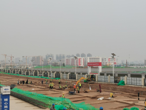 為更好地完成考古發(fā)掘工作和現(xiàn)場(chǎng)施工共同推進(jìn),陜西分公司項(xiàng)目部積極對(duì)接西安市考古院,對(duì)現(xiàn)場(chǎng)進(jìn)行合理安排,在不影響考古發(fā)掘的北側(cè)進(jìn)行圍護(hù)樁施工,其他部位進(jìn)行考古發(fā)掘工作。