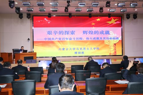 在集中學(xué)習(xí)環(huán)節(jié),公司黨委特邀請(qǐng)了內(nèi)蒙古大學(xué)馬克思主義學(xué)院副院長(zhǎng)、傅鎖根教授給大家進(jìn)行了《艱辛的探索 輝煌的成就—中國(guó)共產(chǎn)黨百年奮斗歷程、偉大成就及其歷史啟迪》專題黨史講座,傅院長(zhǎng)從“中國(guó)共產(chǎn)黨歷史發(fā)展的主題主線、主流本質(zhì);中國(guó)共產(chǎn)黨書寫的偉大成就;中國(guó)共產(chǎn)黨奮斗歷程的歷史啟示”等三個(gè)方面,用生動(dòng)的語(yǔ)言、豐富的案例、詳實(shí)的資料,科學(xué)系統(tǒng)地解讀了中國(guó)共產(chǎn)黨的百年奮斗歷程,對(duì)公司廣大黨員干部深刻學(xué)習(xí)領(lǐng)會(huì)、全面準(zhǔn)確把握中國(guó)共產(chǎn)黨的百年奮斗歷程,具有很強(qiáng)的針對(duì)性和指導(dǎo)性。整場(chǎng)報(bào)告主題鮮明、深入淺出、內(nèi)涵豐富、分析透徹、見解深刻,既有透徹的理論闡述,又有豐富生動(dòng)的實(shí)例;既有理論高度又有現(xiàn)實(shí)針對(duì)性,闡釋了中國(guó)共產(chǎn)黨的百年奮斗歷程的精髓,大家受益匪淺。